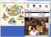 これにより、1)子供達が扱いやすいインタフェースを備え、電子会議室群にビジュアルなガイダンスと親近感を与える事ができる(図2)。2)IDとパスワードによって保護され、各会議室への参加を任意に設定できるので、セキュリティ面からみても安全であり、メンバー同士の信頼関係が作りやすい。